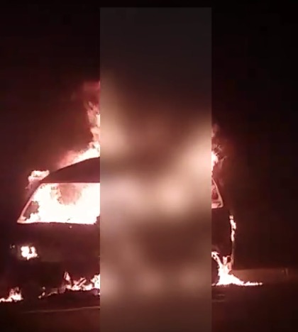 A colisão entre uma van e um carro ocorreu na altura do bairro Bananeiras. Com o impacto da batida, a van explodiu.