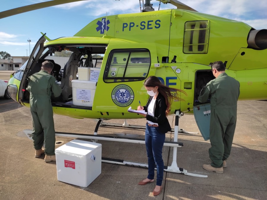 Segundo a prefeitura, as novas remessas com doses das vacinas desembarcaram no Aeroporto de Macaé por volta das 9h, vindas de helicóptero do Rio de Janeiro, e foram recebidas por profissionais da Secretaria de Saúde.