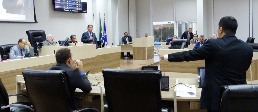 A convocação do Executivo à Câmara Municipal foi feita por meio de um requerimento coletivo, da bancada de oposição. O requerimento 365/2019 foi defendido pelo vereador Marcel Silvano (PT). Segundo ele, seria necessário o comparecimento dos gestores para explicar o planejamento de distribuição de água na cidade. Durante a sessão, o vereador petista afirmou que apesar da liminar, poderia ser que a prefeitua ainda fosse fazer o trabalho. "Nós queremos saber como isso ocorrerá". Também assinaram o requerimento os vereadores Robson Oliveira (PSDB), Maxwell Vaz (SD) e Marvel Maillet (Rede).