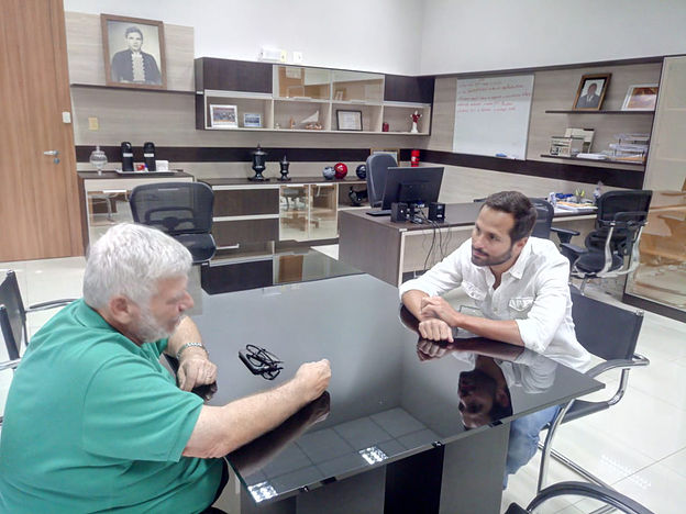 À direita, deputado federal Marcelo Calero (PPS) conversa com o presidente da Câmara Municipal de Macaé, Dr. Eduardo Cardoso (PPS), durante visita às cidades de Macaé e Campos