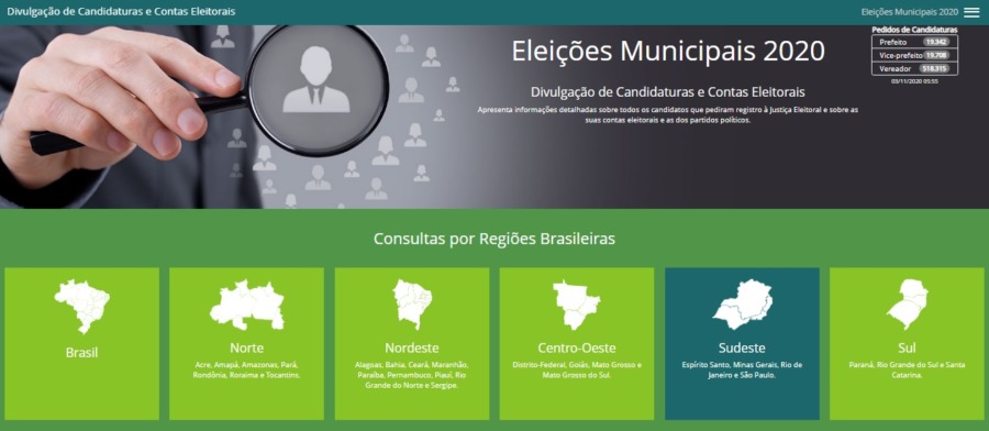 Restando apenas 12 dias para as eleições municipais, o site DivulgaCandContas, do Tribunal Superior Eleitoral (TSE), traz dados sobre as candidaturas a prefeito, vice-prefeito e vereador em todos os municípios do país.