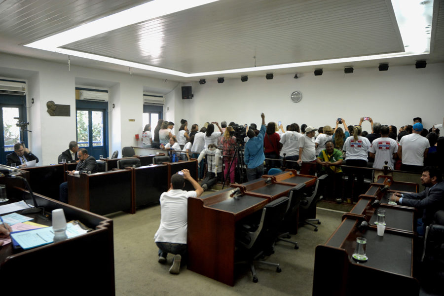 Além de entoar cantos e vaias durante toda a sessão, os manifestantes cobravam uma mudança de atitude dos vereadores. Faixas e cartazes com as palavras “Câmara omissa”, além de cantos como “Outubro está chegando” fizeram parte do cenário conturbado da sessão.