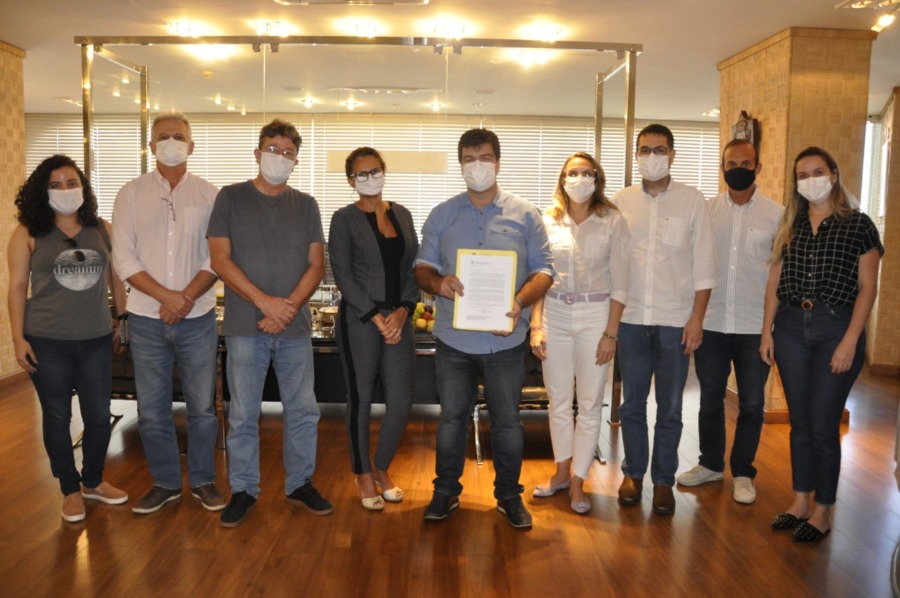 Para elaboração da proposta, o prefeito se reuniu com o procurador-geral do município, Rodrigo Cavour, e com representantes da classe, que posaram para um foto ao final do encontro, com Welberth Rezende segurando o texto.