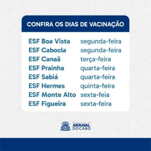 Na próxima segunda-feira (11), Arraial do Cabo dará início à campanha de vacinação com a vacina XBB contra a Covid-19. A Secretaria de Saúde do município recebeu um novo lote deste imunizante, mais eficaz contra a variante XBB 1.5, que tem sido responsável pelo maior número de casos e internações no Brasil.
