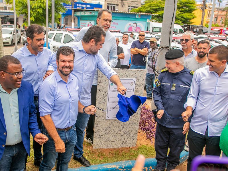 Além da cerimônia na placa, que contou com a presença de autoridades municipais e estaduais, a solenidade marcou ainda a entrega de 20 novas viaturas blindadas que foram doadas para a Polícia Militar (PM) para uso exclusivo no município.