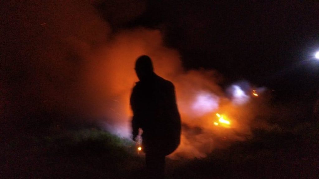 De acordo com o secretário de Segurança Pública cabista, Bruno Monteiro, a suspeita inicial era de que o combustível da aeronave pudesse ter dado início ao fogo, mas a relação dos acontecimentos foi descartada. Uma grande cortina de fumaça se formou pela região, inclusive na estrada que dá acesso aos distritos. O incêndio foi controlado por equipes do Corpo de Bombeiros (CBMERJ).