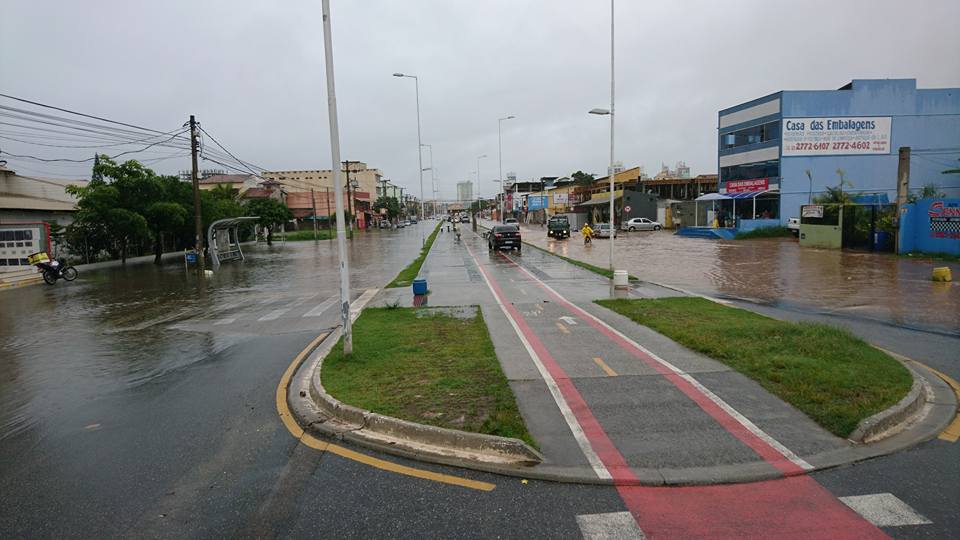 Na foto, Avenida Ayrton Senna, em Macaé, totalmente alagada nesta quinta-feira (05)