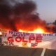 Rodovia RJ 106, em Macaé, é fechada por movimento para cobrar as pendências do Acordo Coletivo dos Trabalhadores
