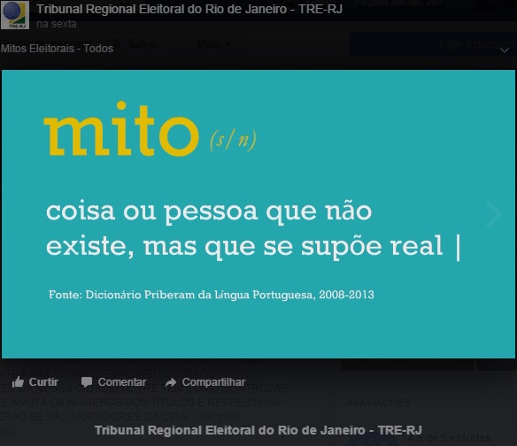 Sabendo disso, neste sábado, 1 de outubro, o Tribunal Regional Eleitoral do Estado do Rio de Janeiro (TRE-RJ) divulgou em sua página no Facebook um vídeo no melhor estilo Caçadores de Mitos (MythBusters, no original), um programa de televisão criado em 2003 que ficou famoso por refutar histórias fantasiosas sobre diversos temas que tinham virado verdades populares