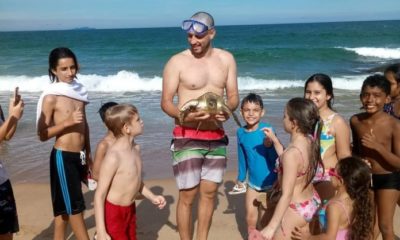 Banhistas salvam tartaruga enrolada em rede de pesca em Rio das Ostras