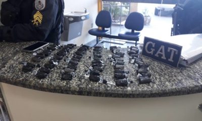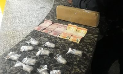 Foram apreendidos ½ kg de pasta base de cocaína, uma arma falsa, 290 pedras de crack, 127 cápsulas de cocaína e 106 trouxinhas de maconha. A...